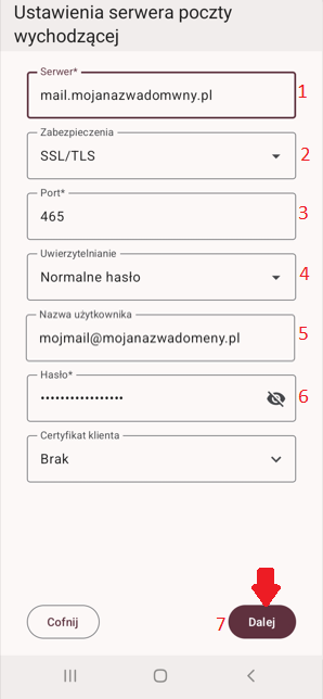 6 Hasło – wpisujemy aktualne hasło do konta pocztowego