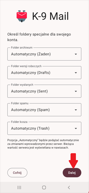 W kolejnych etapach mamy możliwość spersonalizowania sposobu działania aplikacji min. określenie specjalnych folderów dla konta czy też ustawienie częstotliwości odświeżania skrzynki pocztowej oraz ilości wyświetlanych wiadomości na ekranie głównym aplikacji.